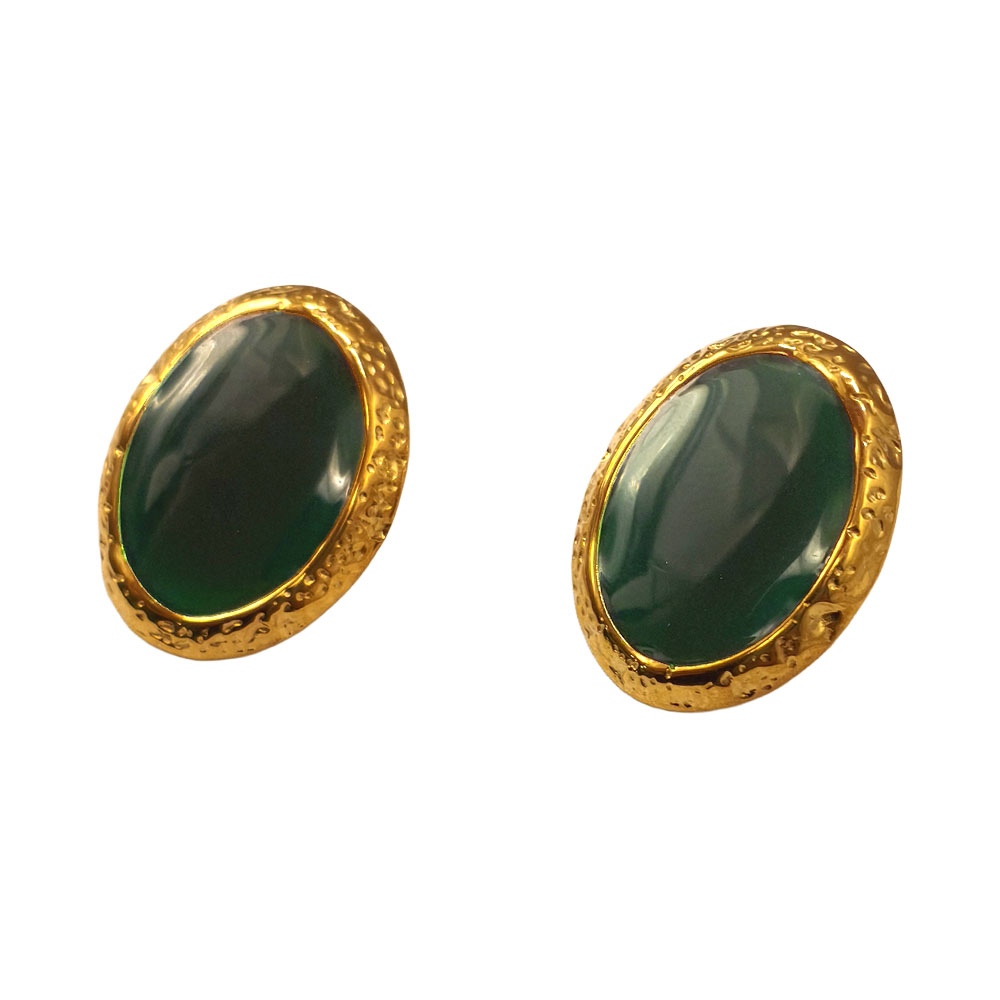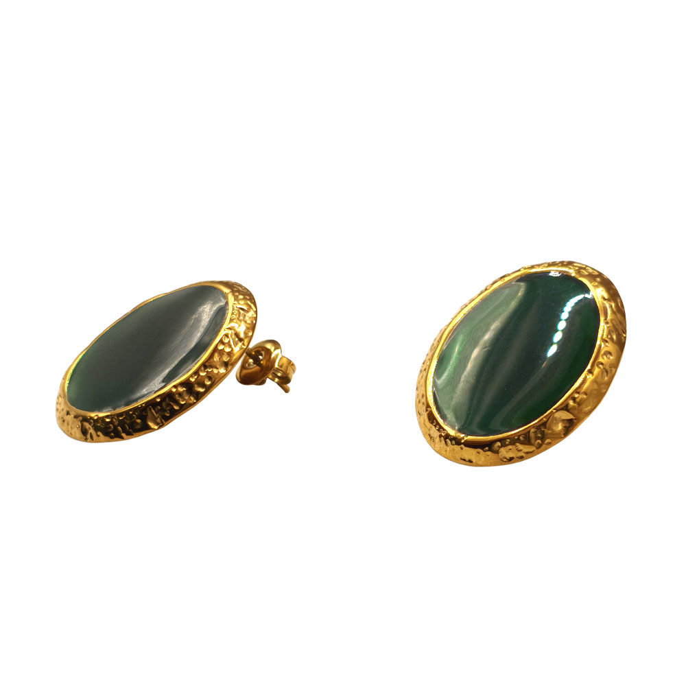 - Κομψά σκουλαρίκια με χρυσό πλαίσιο και εντυπωσιακή πράσινη πέτρα