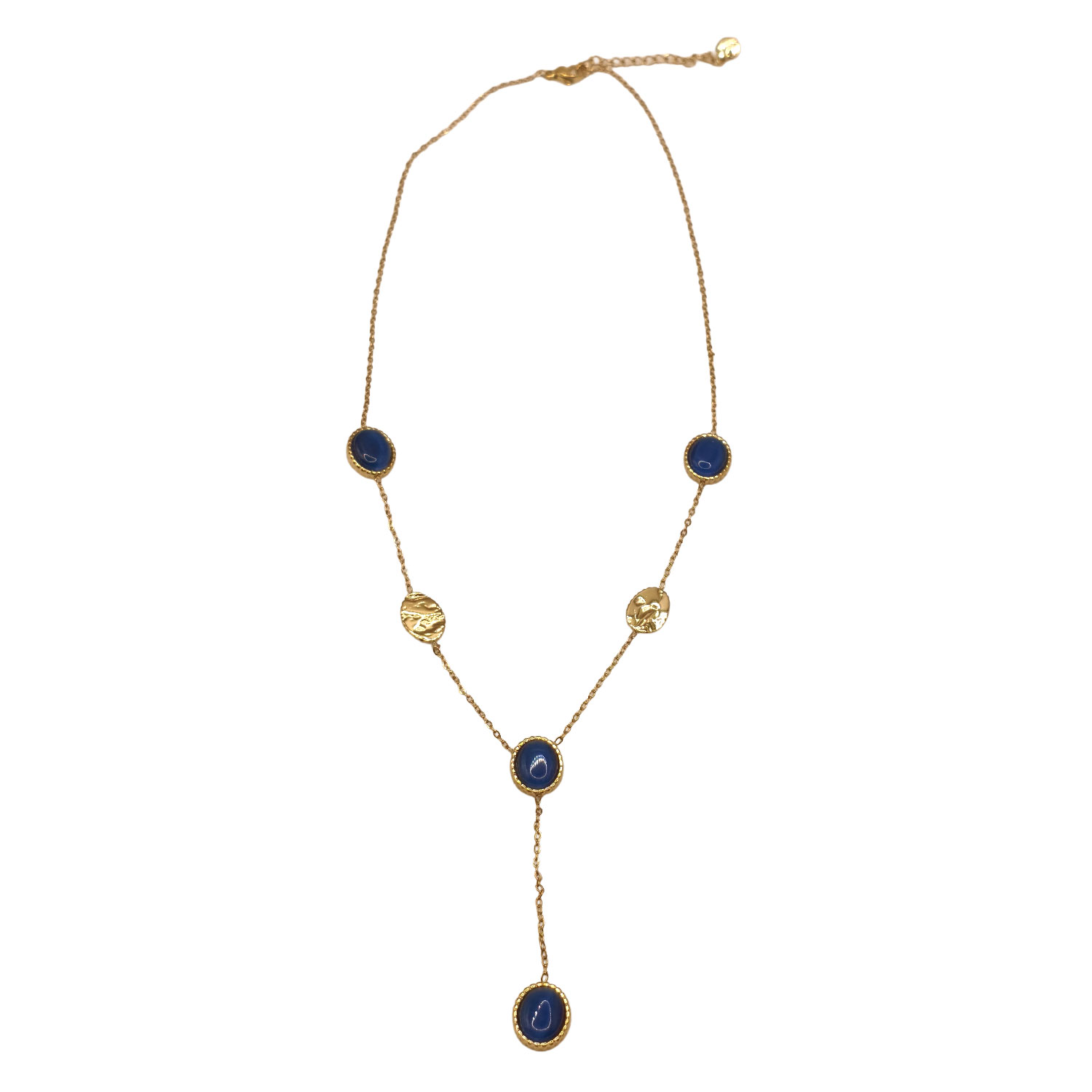 Κολιέ Γυναικείο με Μπλέ Πέτρες και Προέκταση απο Ανοξείδωτο Ατσάλι Χρυσό K799