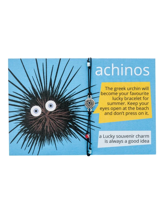 Χειροποίητο βραχιόλι με επιροδιωμένο ορειχάλκινο στοιχείο αχινό, ματάκια & κορδόνι αυξομείωσης.