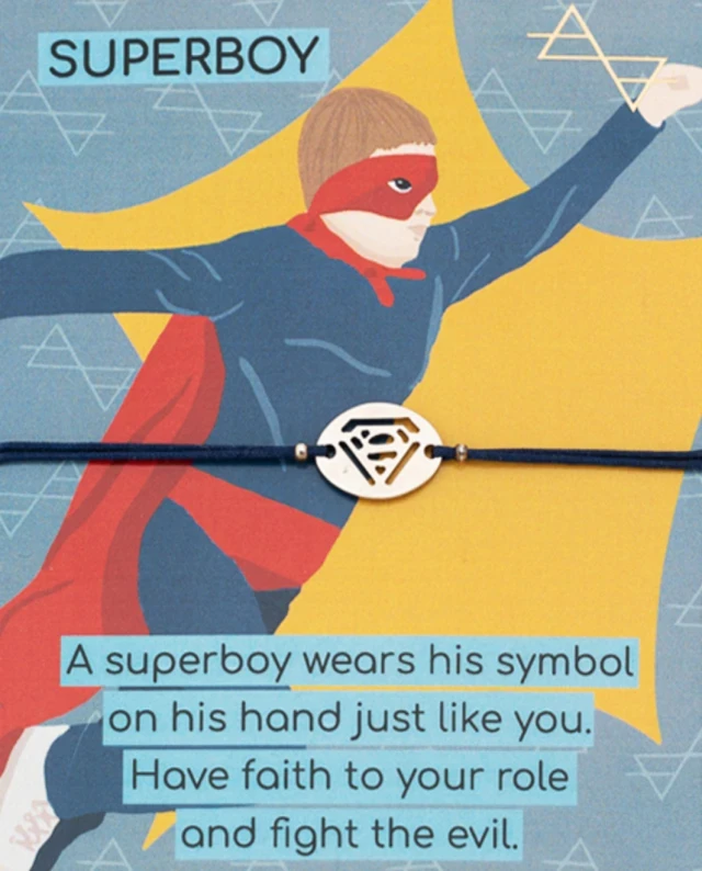 Χειροποίητο βραχιόλι με μεταλλικό επιροδιωμένο στοιχείο superman & κορδόνι αυξομείωσης.