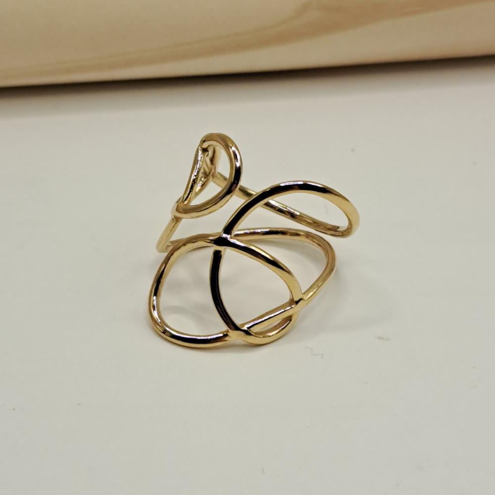 • Αυτό το εντυπωσιακό δαχτυλίδι από ανοξείδωτο ατσάλι, με την πολυδιάστατη χρυσαφένια σχεδίασή του, ξεχωρίζει για τη μοντέρνα αισθητική και την κομψότητά του.