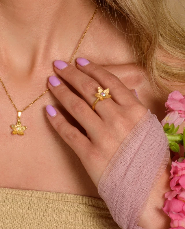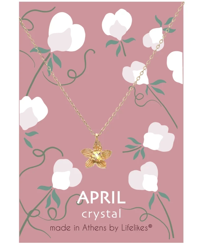 Χειροποίητο κολιέ με κρεμαστό σε σχήμα λουλουδιού με το Birthstone του Απριλίου, το διαμάντι.