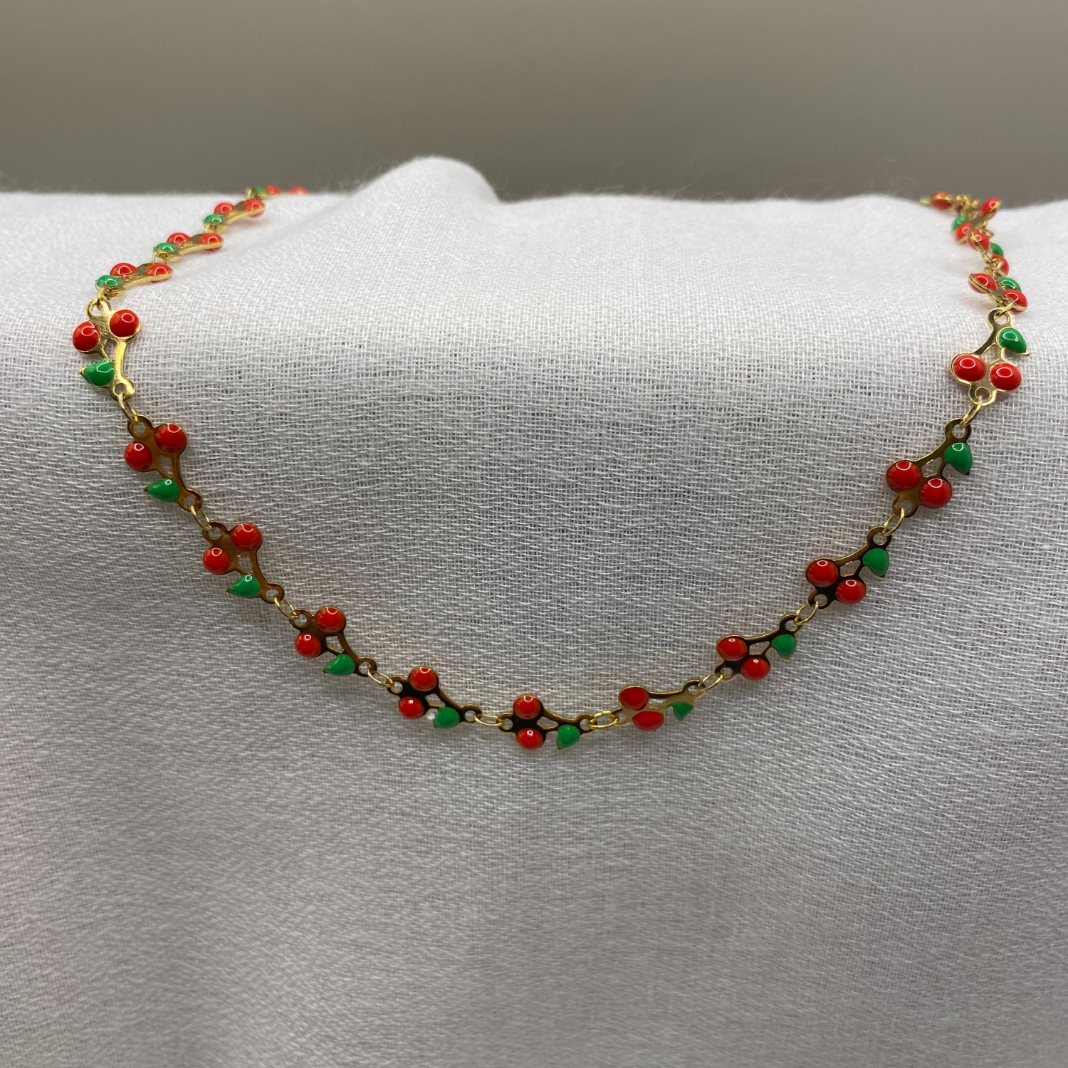 Κολιέ Γυναικείο Κεράσι από Ατσάλι σε Χρυσή Απόχρωση K164