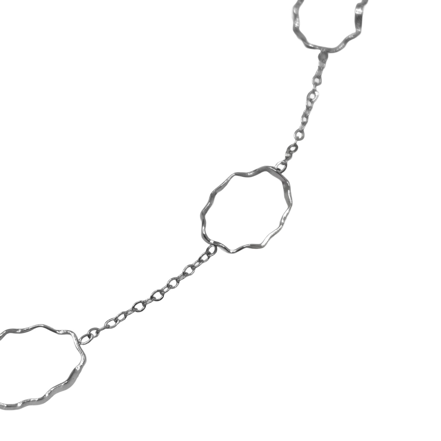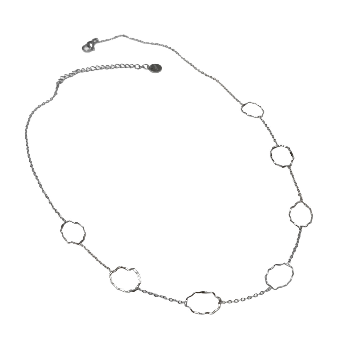 • Κομψό ασημί κολιέ με ακανόνιστους κρίκους, ιδανικό για διακριτική καθημερινή λάμψη.
