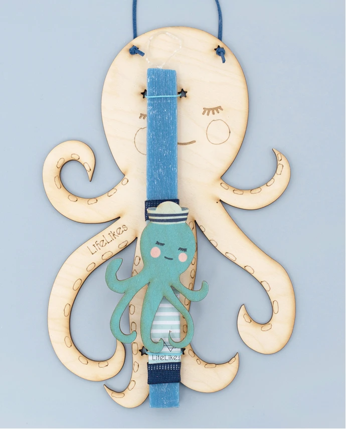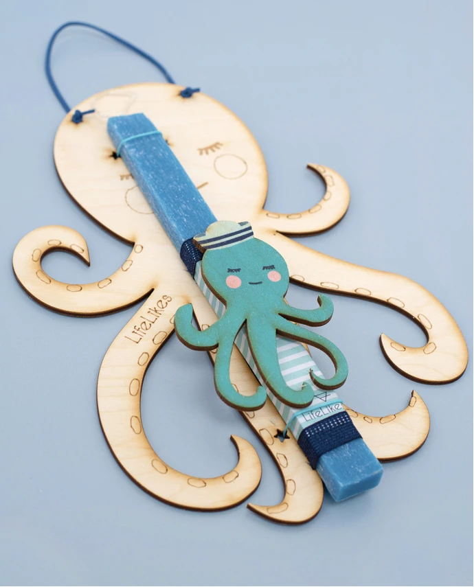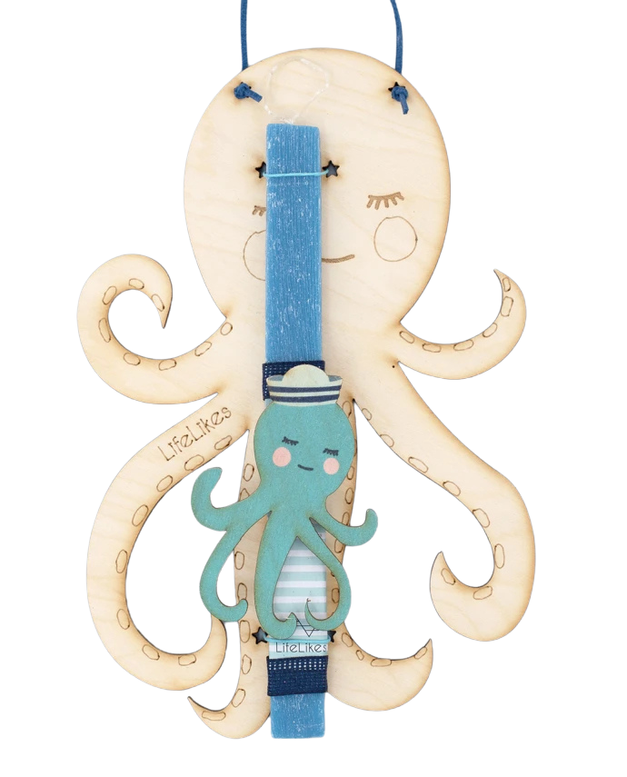 - Λαμπάδα Lifelikes με χαριτωμένο χρωματιστό χταπόδι, τοποθετημένη σε ξύλινο κάδρο που μπορεί να κρεμαστεί στο παιδικό δωμάτιο σαν διακοσμητικό.