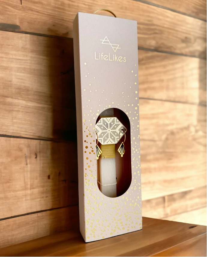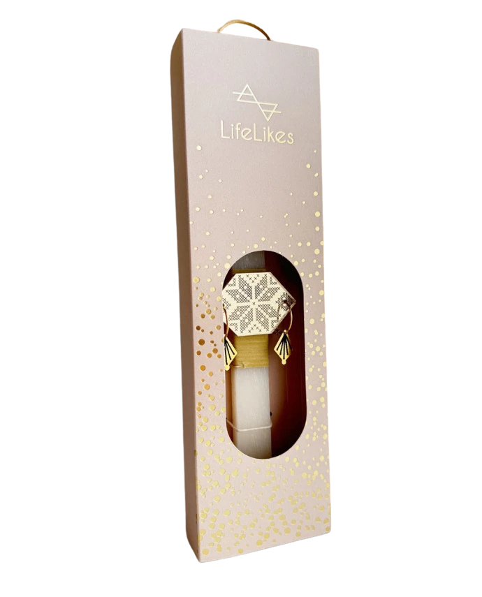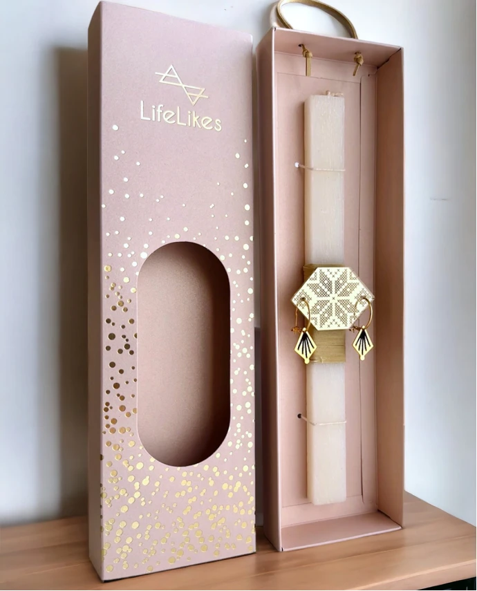 - Η λαμπάδα συνοδεύεται από χρυσά κρεμαστά σκουλαρίκια, της συλλογής “Kedima”, για να είσαι ακόμα πιο λαμπερή την ημέρα της Ανάστασης.