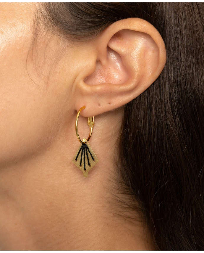 - Τα σκουλαρίκια είναι τοποθετημένα επάνω σε χρυσό plexiglass-μαγνητάκι, με χάραξη σταυροβελονιάς!