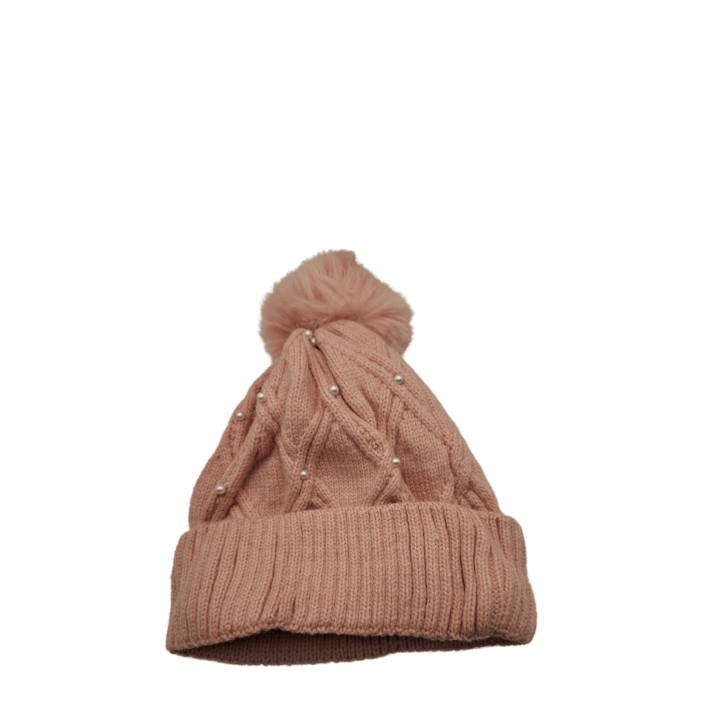 Σκουφί Γυναικείο Μάλλινο Με Πέρλες Και Φούντα Σε Ρόζ