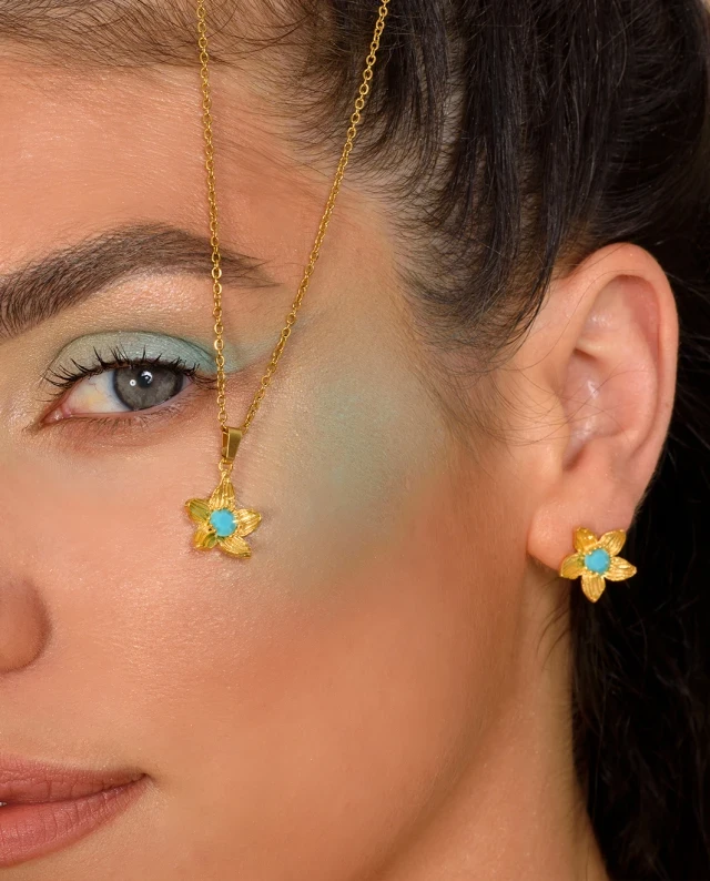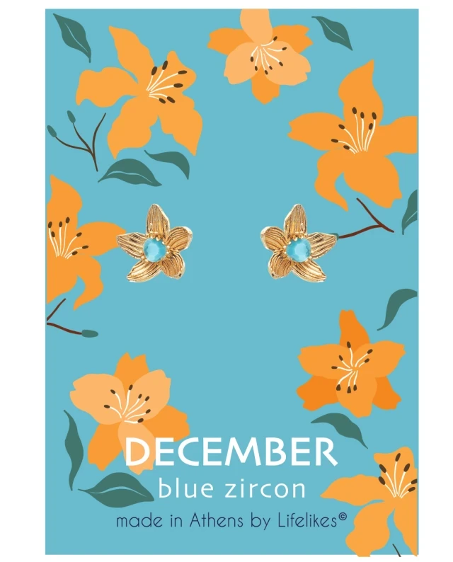 Χειροποίητα σκουλαρίκια σε σχήμα λουλουδιού με το Birthstone του Δεκεμβρίου, το μπλε ζιργκόν.