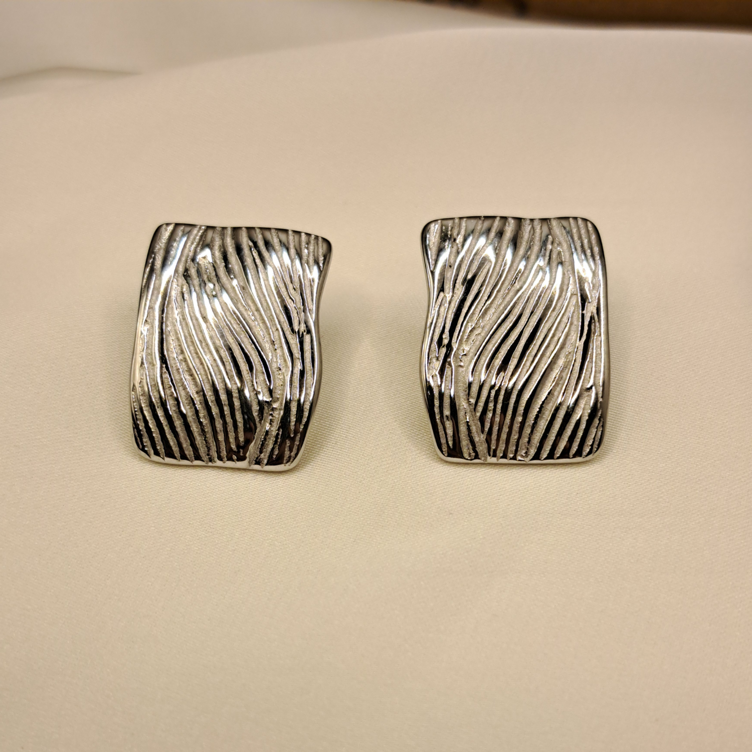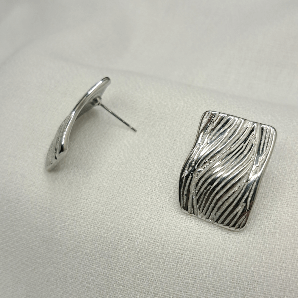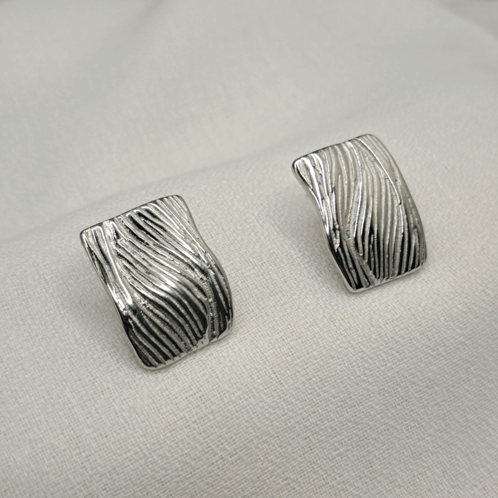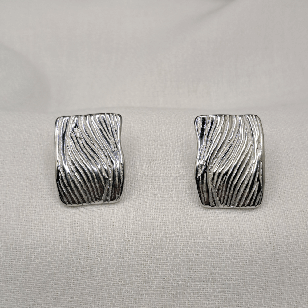 - Εντυπωσιακά Ασημένια σκουλαρίκια διαθέτουν ένα μοναδικό ανάγλυφο σχέδιο που μιμείται τις φυσικές γραμμές του ξύλου ή των κυμάτων, προσδίδοντας έναν οργανικό και καλλιτεχνικό χαρακτήρα.