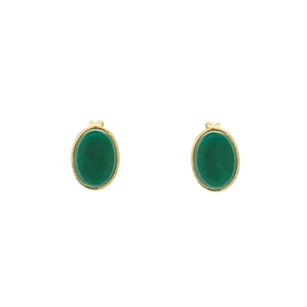Χειροποίητα σκουλαρίκια από επιχρυσωμένο ορείχαλκο με ημιπολύτιμη πέτρα αχάτη σε σμαραγδί χρώμα.