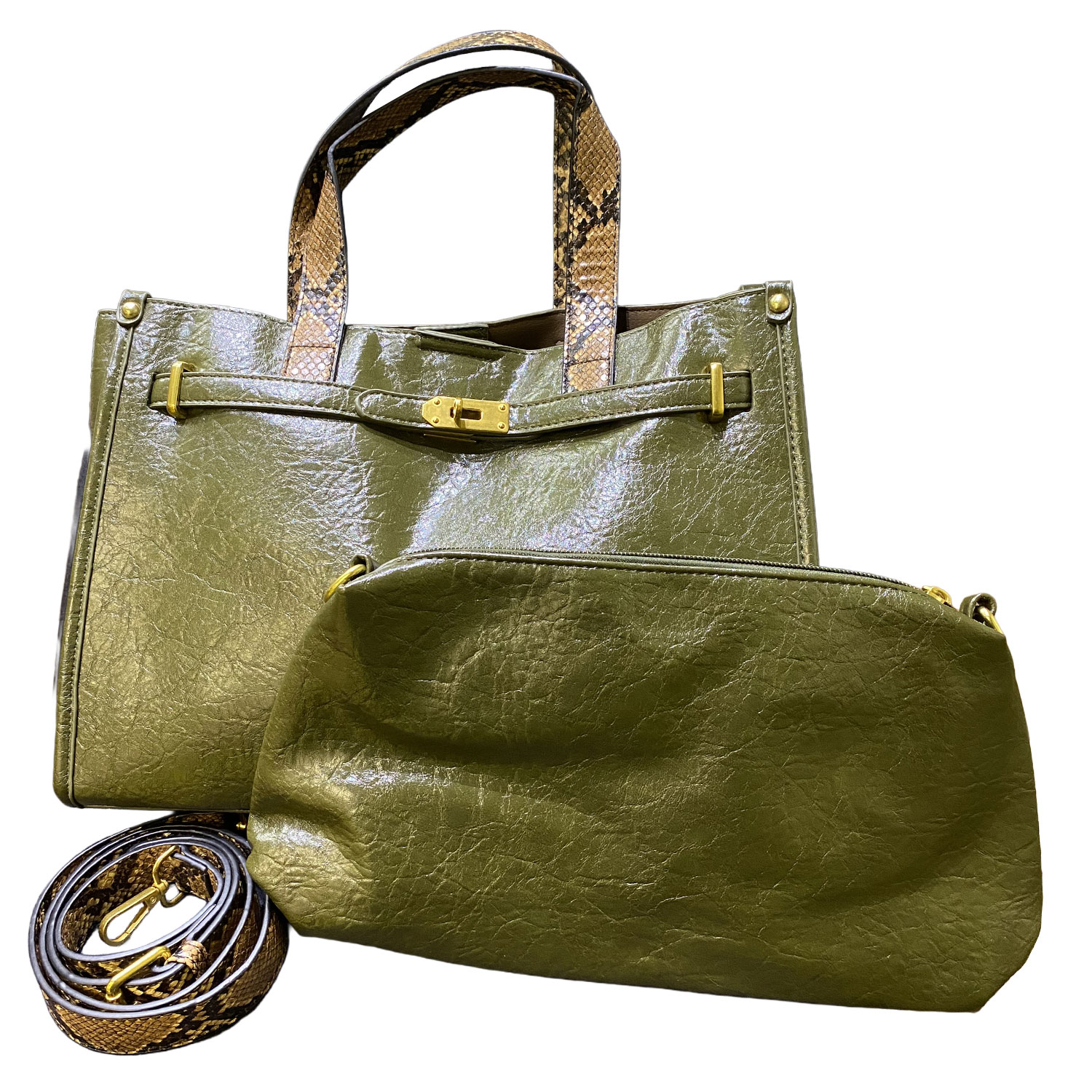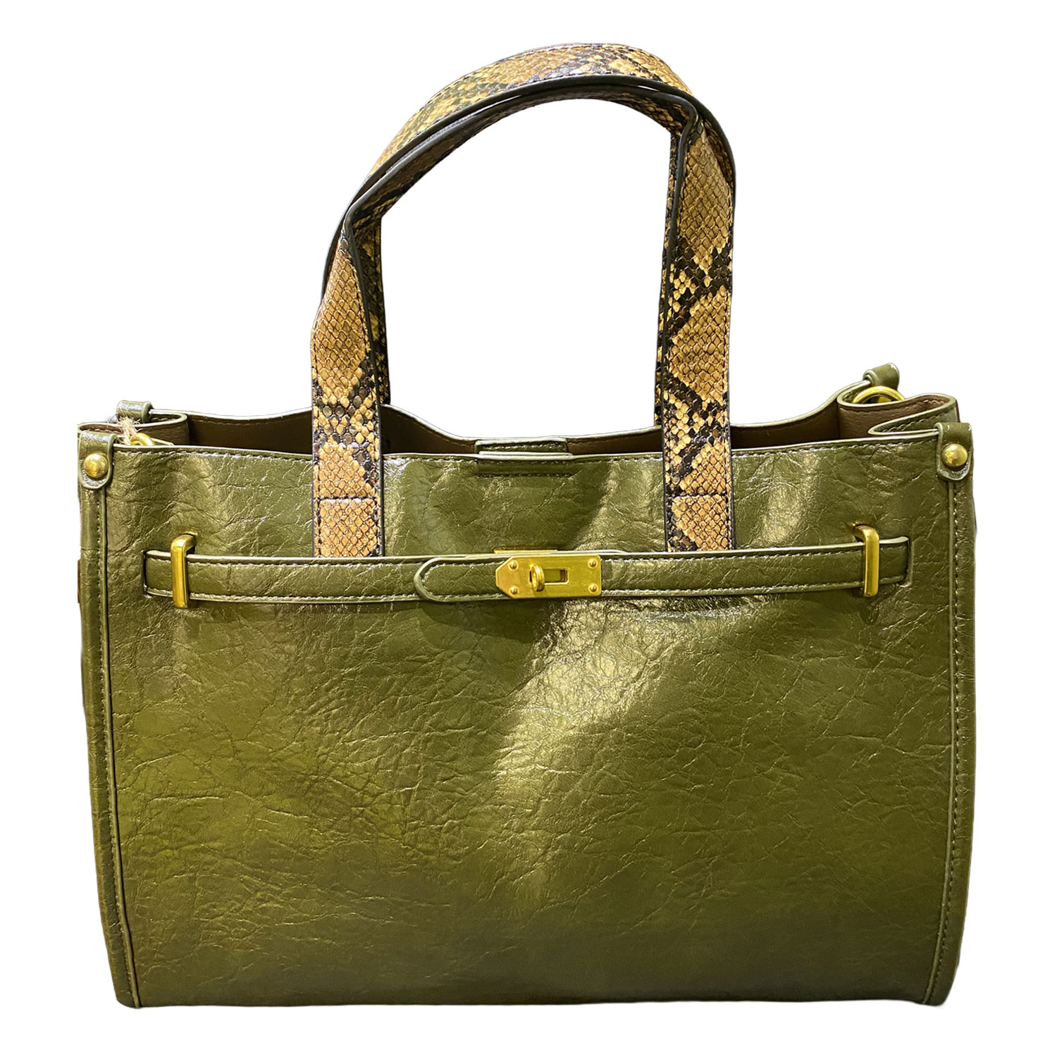 Τσάντα Γυναικεία Χειρός απο Τεχνόδερμα Λαδί