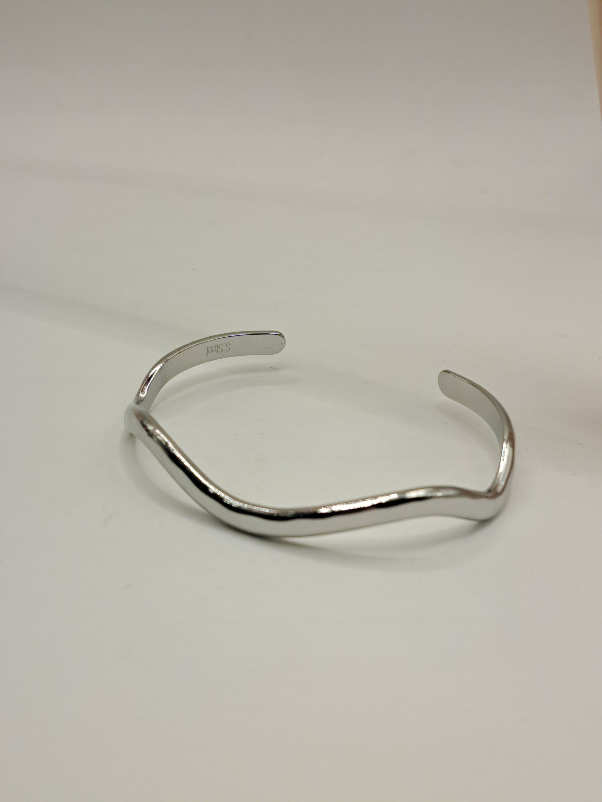 Βραχίολι Χειροπέδα Κυματιστή Από Ανοξείδωτο Ατσάλι Σε Ασημί