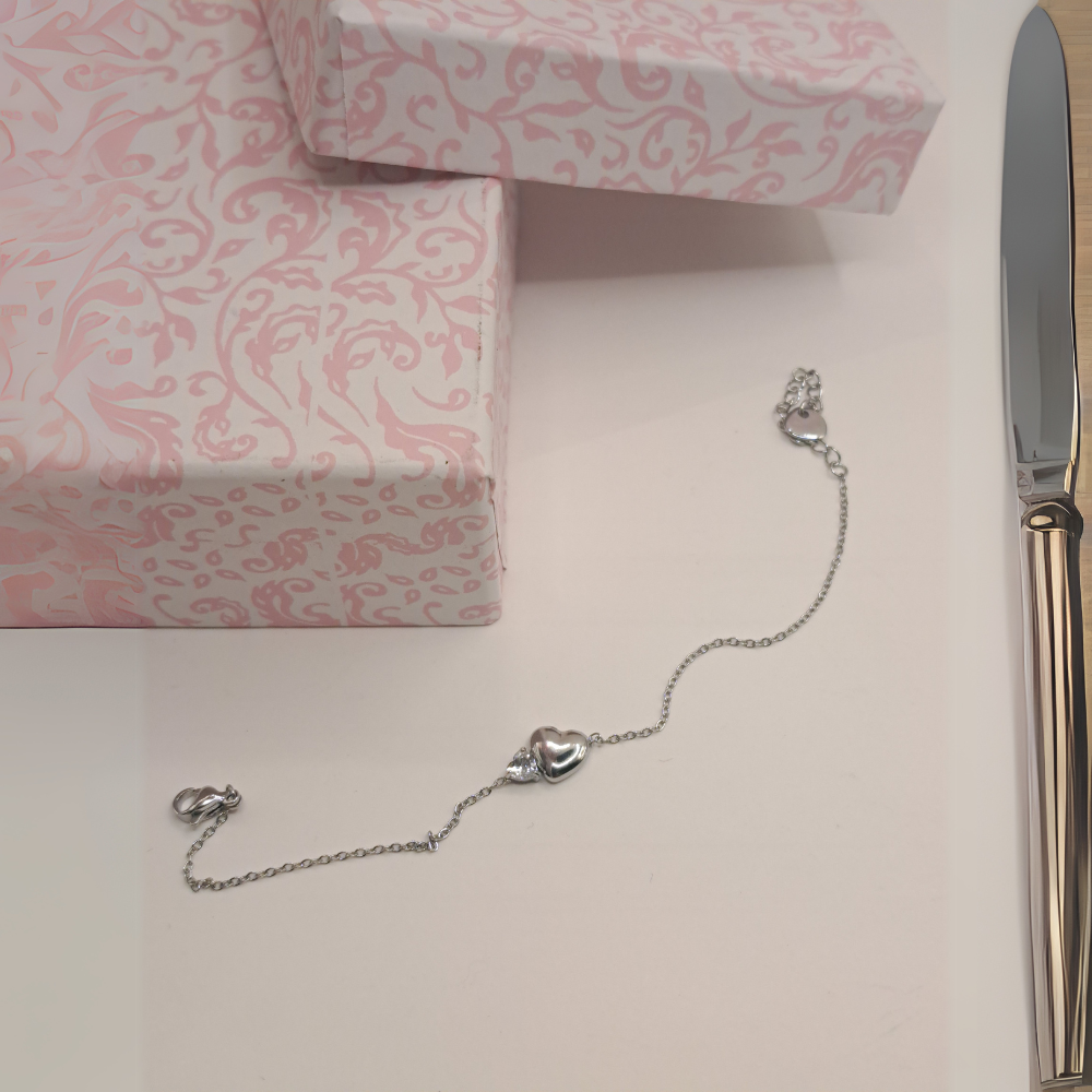 - Η λεπτή αλυσίδα του αγκαλιάζει διακριτικά τον καρπό, ενώ η καρδιά στο κέντρο του σχεδιασμού συμβολίζει την αγάπη και την αρμονία.